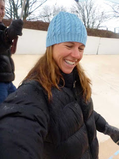 Below the thick blue stripe is a cinder running track filled with water. Which, as we decided to climb up the steepest part (covered in slick paint), we realized would be similar to a water slide landing should we lose our footing.